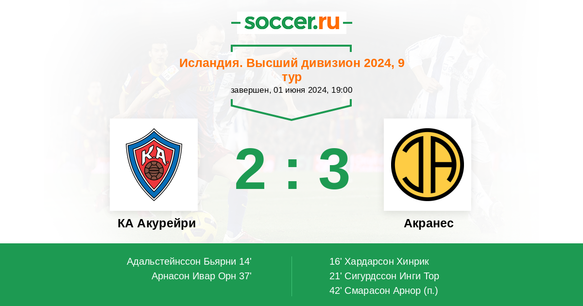 14' (1:0) Адальстейнссон Бьярни (77) (Хаукссон Свейн Маргейр (30))