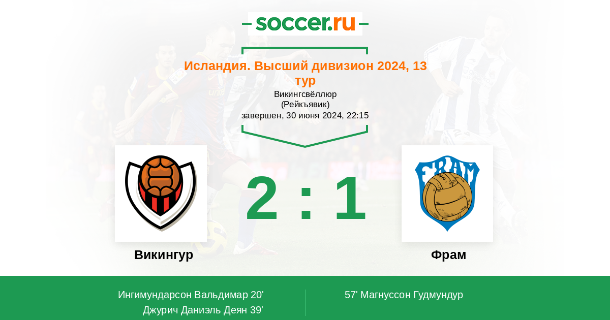 20' (1:0) Ингимундарсон Вальдимар (25) (Ватнамар Гуннар (6))
