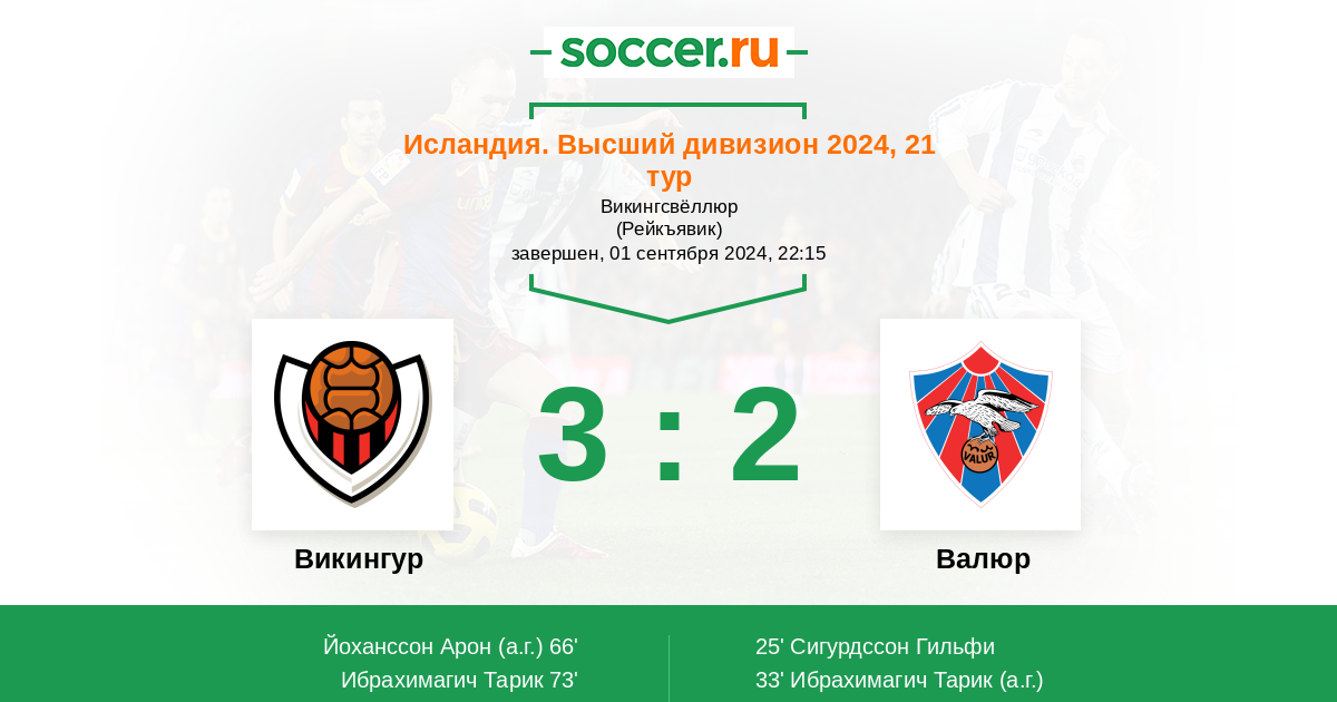 82' (3:2) Сигурпалссон Ари (17) (Гуннарссон Карл (22))