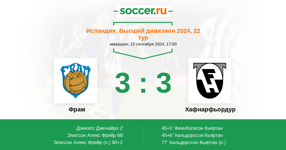 77' (2:3) Хальдорссон Кьяртан (7)