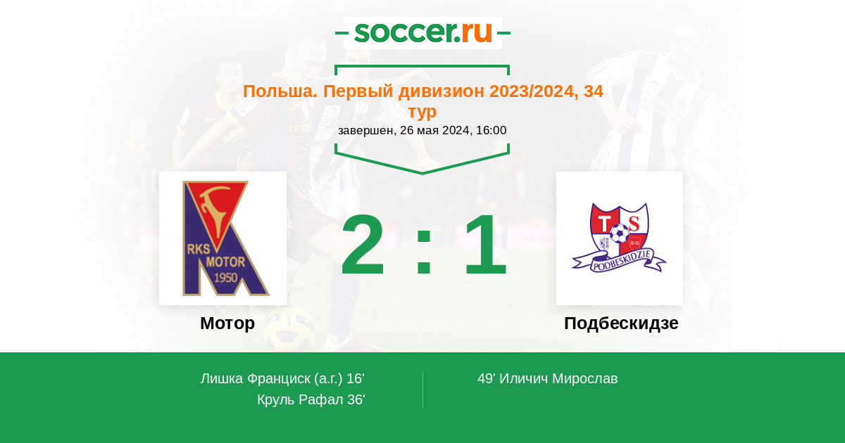 16' (1:0) Автогол Лишка Франциск