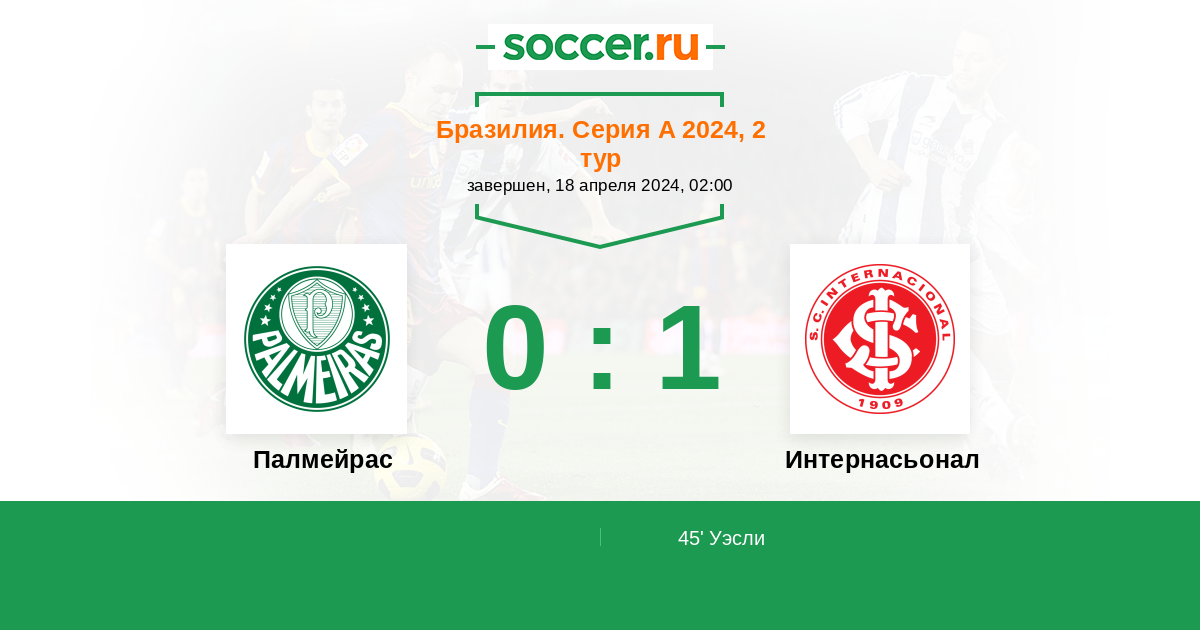 45' (0:1) Уэсли (21) (Борре Сантос (19))