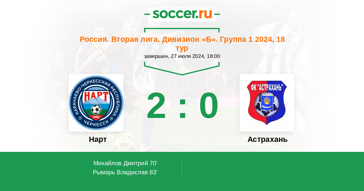 Запасные: Исаев Шихамир (с 62'), Улбашев Ислам (с 75'), Чалый Никита (с 75'), Тхакохов Эльдар (с 86'), Кенжев Малик (с 86')