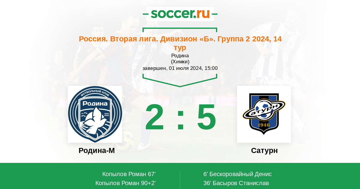 36' (0:2) Басыров Станислав