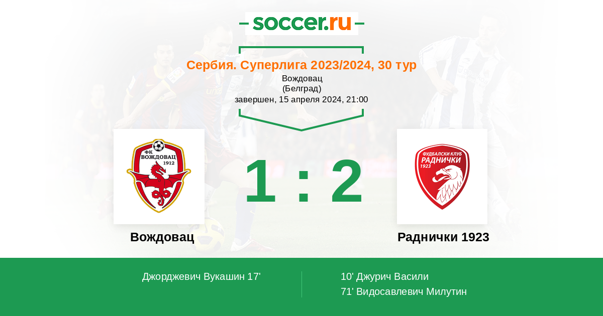 17' (1:1) Джорджевич Вукашин (44) (Нешкович Михайло (77))