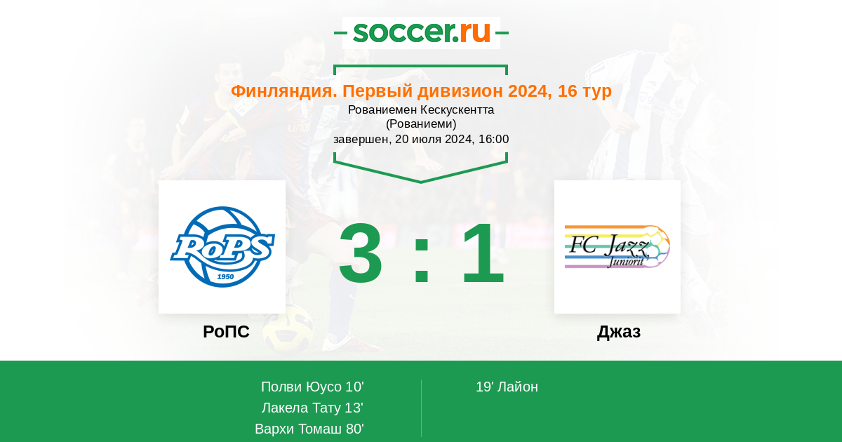 10' (1:0) Полви Юусо (14)