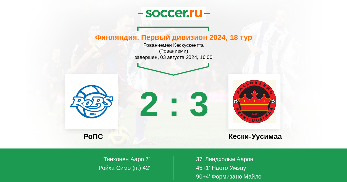 Запасные: 18 Петришин Егор (с 29'), 11 Вархи Томаш (с 46'), 4 Дементьефф Топиас (с 79'), 12 Рантала Микко, 15 Виммер Вити, 17 Ассиджо Камон-Шеррелл, 86 Олабиси Самуэль