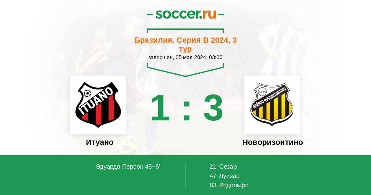 Запасные: 25 Луизао (с 25'), 16 Реверсон (с 46'), 9 Нето (с 46'), 8 Фариас Виллиан (с 69'), 7 Родольфо (с 81'), 21 Эдуардо, 26 Дантас, 12 Лукас, 4 Патрик, 50 Стенио, 14 Данило