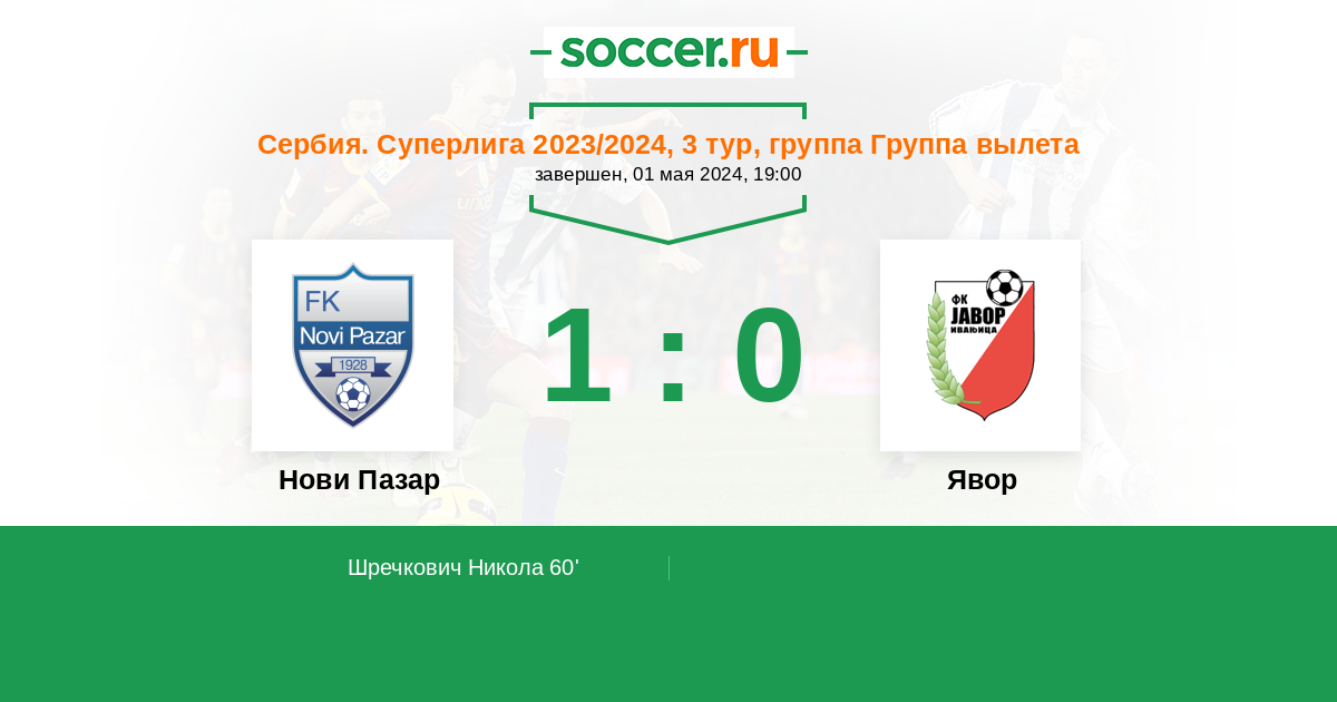 60' (1:0) Шречкович Никола (10)