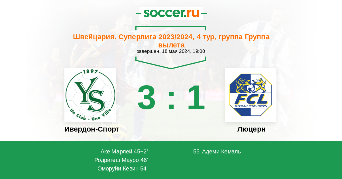 55' (3:1) Адеми Кемаль (99) (Хаас Николас (32))