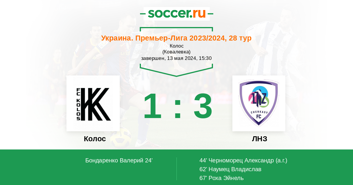 44' (1:1) Автогол Черноморец Александр (15)