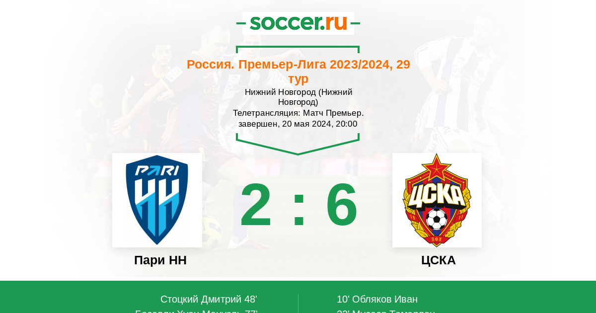 Есть и еще парочка моментов, которые говорят против гостей. Во-первых, ЦСКА за неделю провел два сложнейших матча с “Зенитом” (в чемпионате и Кубке) — сил на финише и без того не осталось, а тут такая проверка на прочность. Во-вторых, “армейцы” в целом-то по сезону беззубые на выезде — только три победы в 14-ти матчах. “Пари НН”, в свою очередь, набирал очки в 11-ти из 14-ти домашних игр.