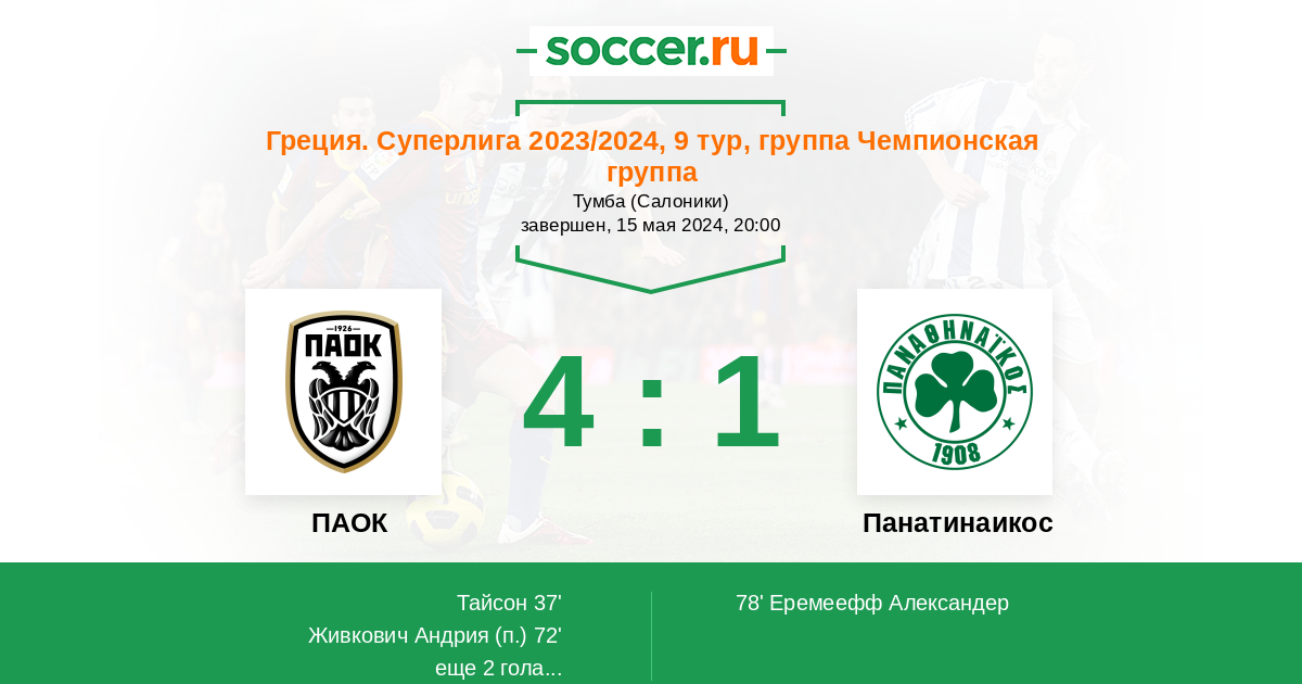 37' (1:0) Тайсон (11) (Константелиас Иоаннис (7))