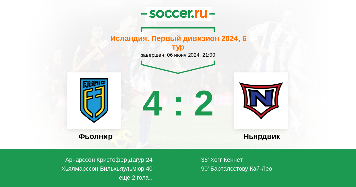 40' (2:1) Хьялмарссон Вильхьяульмюр