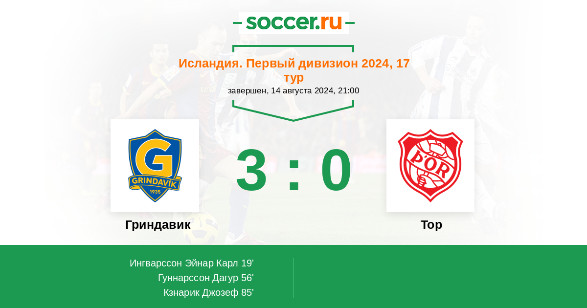 19' (1:0) Ингварссон Эйнар Карл
