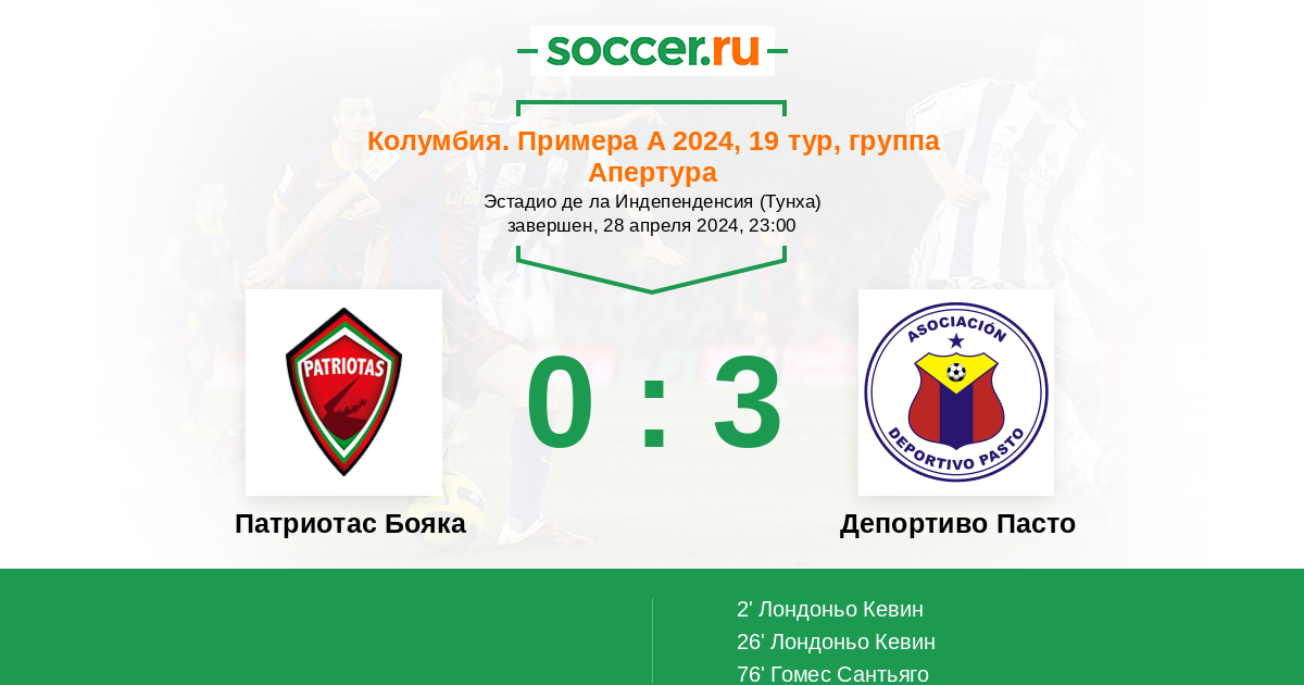 76' (0:3) Гомес Сантьяго (15) (Лондоньо Кевин (7))