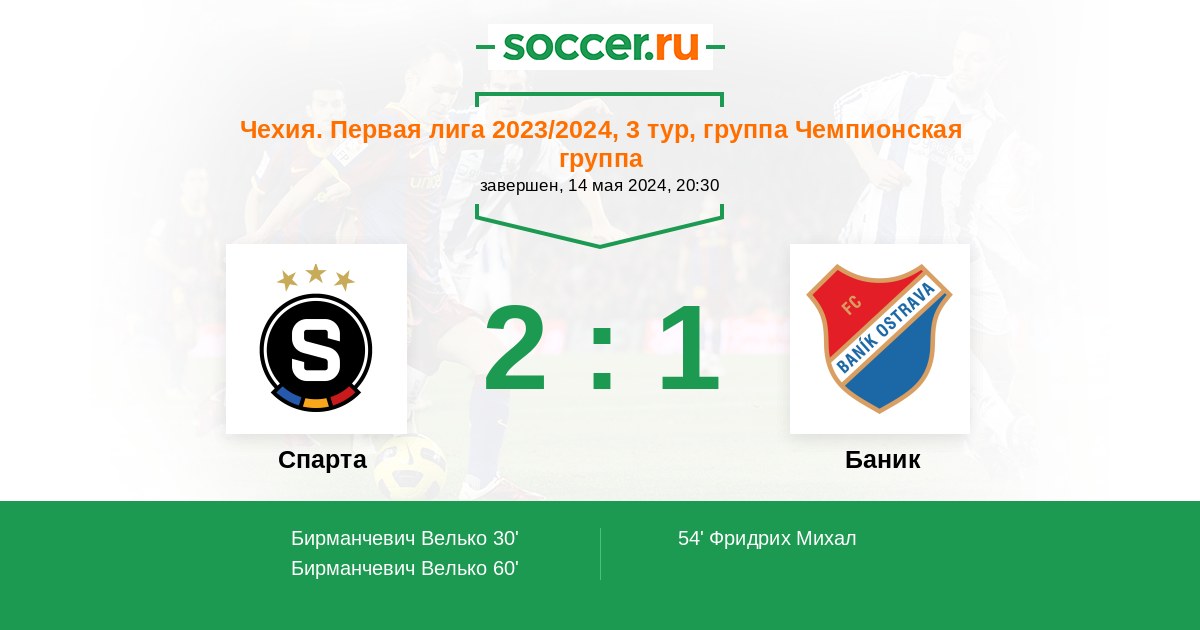 54' (1:1) Фридрих Михал (17) (Шин Матей (10))