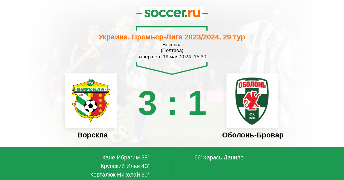 66' (3:1) Карась Данило (2)
