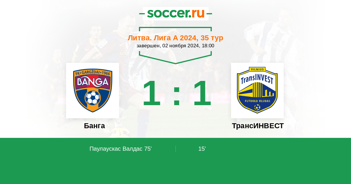 75' (1:1) Паулаускас Валдас (79) (A. Sousa)