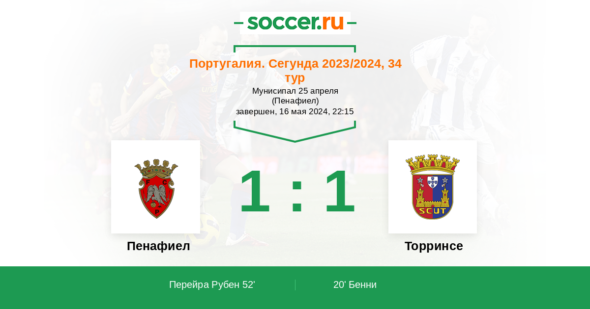 52' (1:1) Перейра Рубен (44)