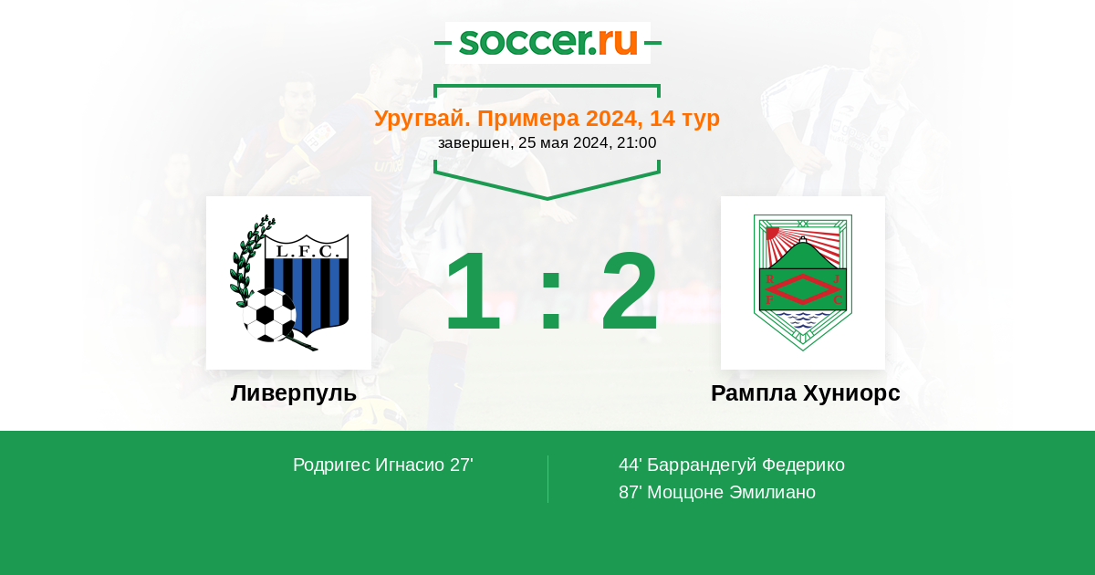 44' (1:1) Баррандегуй Федерико (17)