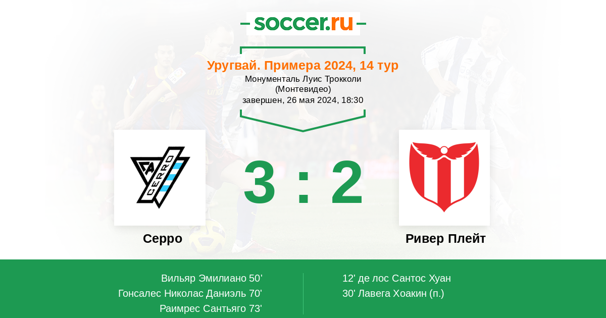 73' (3:2) Раимрес Сантьяго (10)