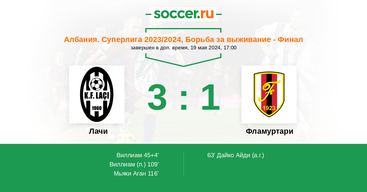 63' (1:1) Автогол Дайко Айди
