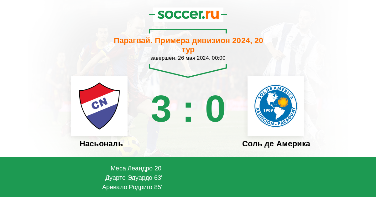 20' (1:0) Меса Леандро (13) (Гомес Алан (20))