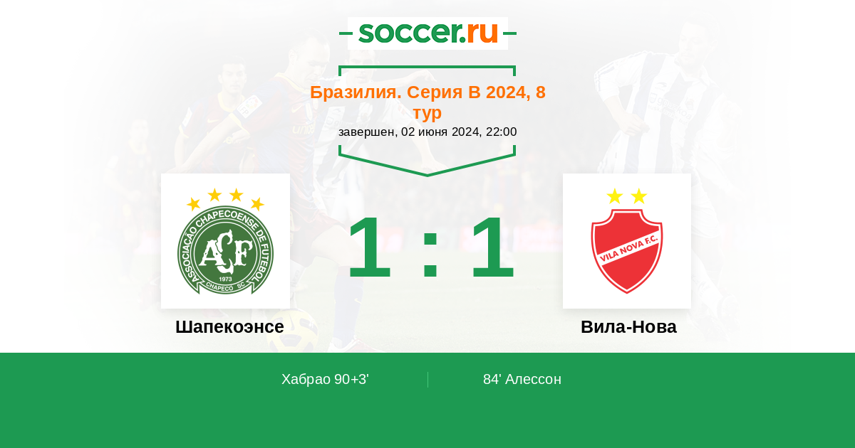 84' (0:1) Алессон (11) (Алмейда Энрике (19))