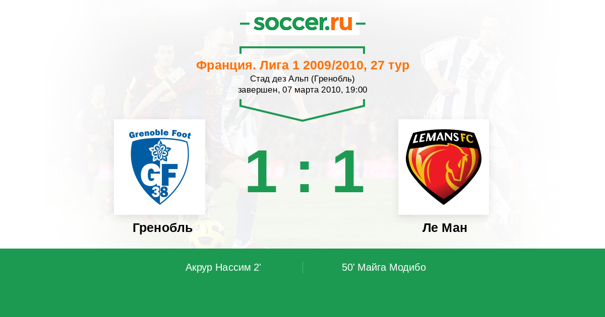 50' (1:1) Майга Модибо (9) (Ле Таллек Антони (10))