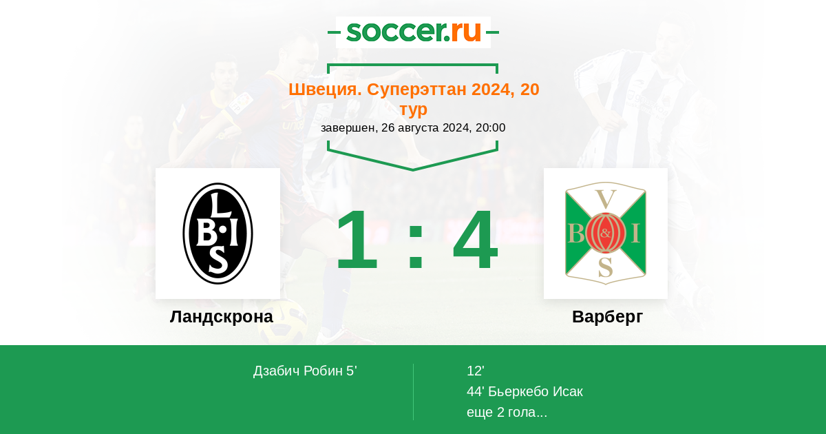 44' (1:2) Бьеркебо Исак (11) (A. Kurochkin)