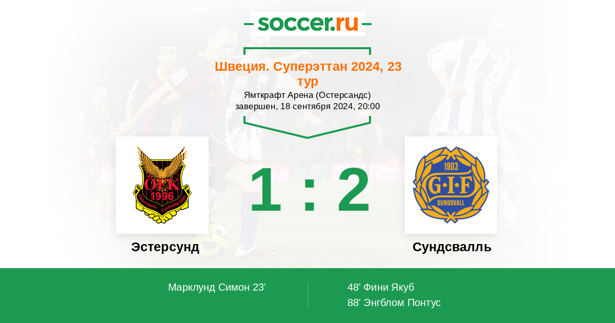 88' (1:2) Энгблом Понтус (21) (Ольссон Деннис (5))