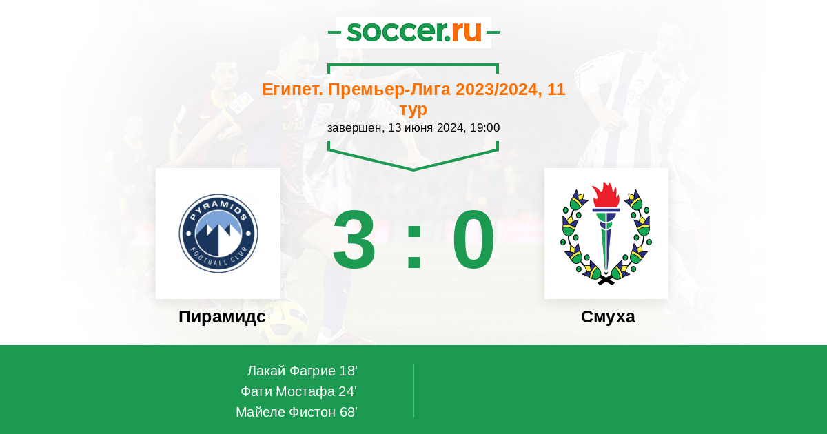 18' (1:0) Лакай Фагрие (23) (Фати Мостафа (11))