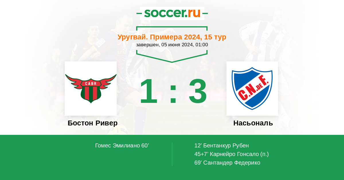 45+7' (0:2) Карнейро Гонсало (20)