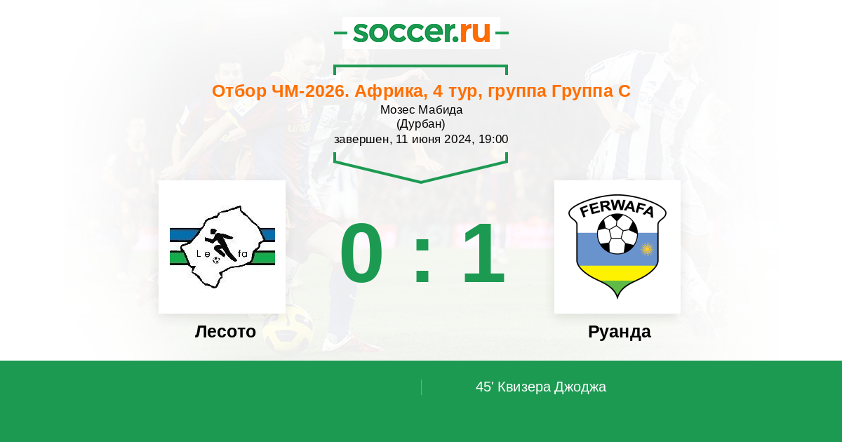 45' (0:1) Квизера Джоджа (22) (Омборенга Фитина (13))