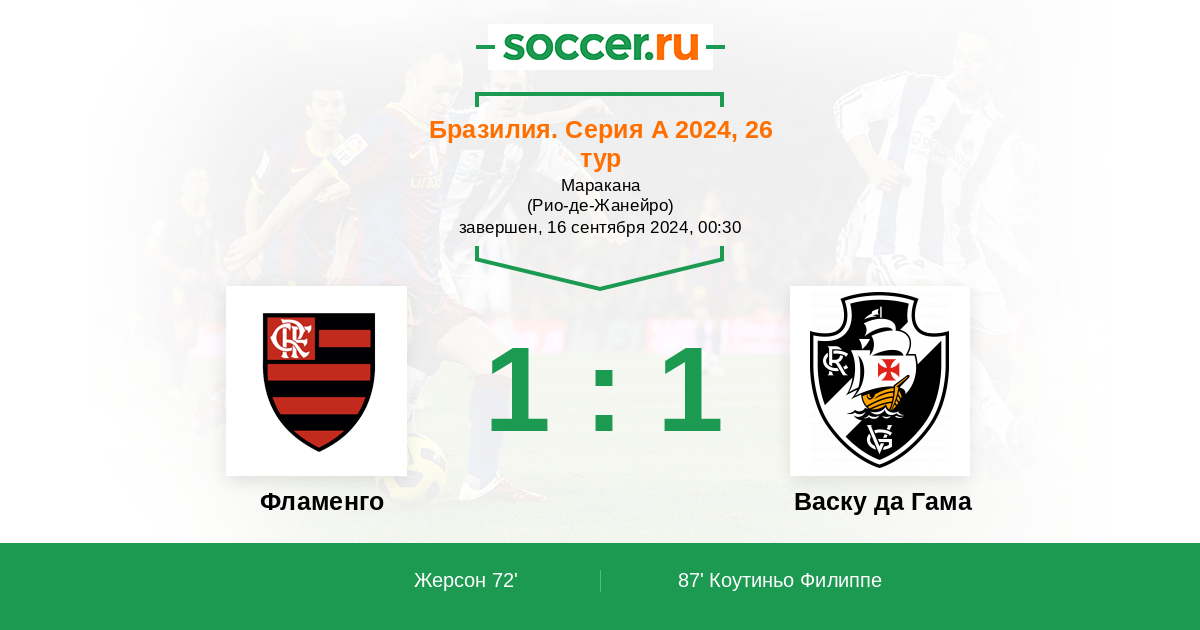 Запасные: 14 Де Арраскаэта Джорджиан (с 18'), 43 Уэсли (с 63'), 22 Мойзес (с 63'), 99 Барбоса Габриэль (с 83'), 52 Эверттон (с 83'), 33 Клейтон, 19 Лорран, 23 Луис Давид, 25 Кунья Матеус, 29 Аллан, 20 Матеус Гонсалвеш, 57 Яго