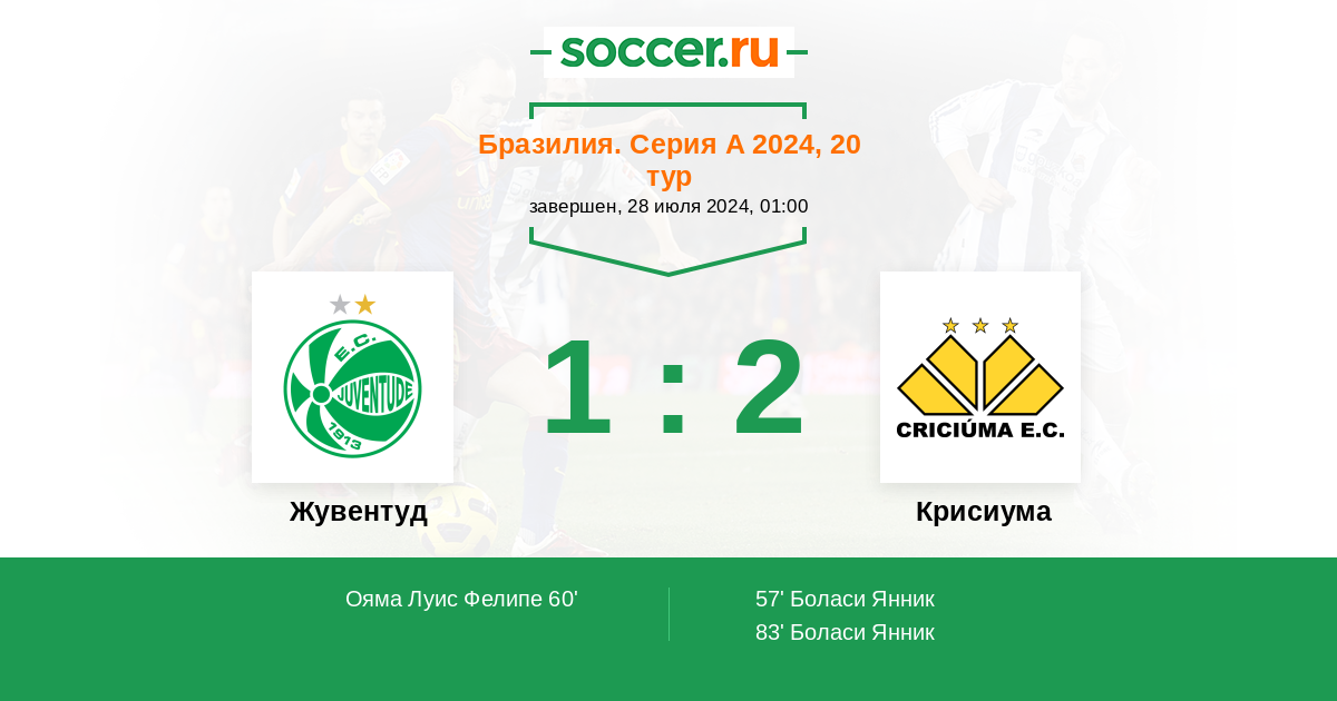 60' (1:1) Ояма Луис Фелипе (5) (Жадсон (16))