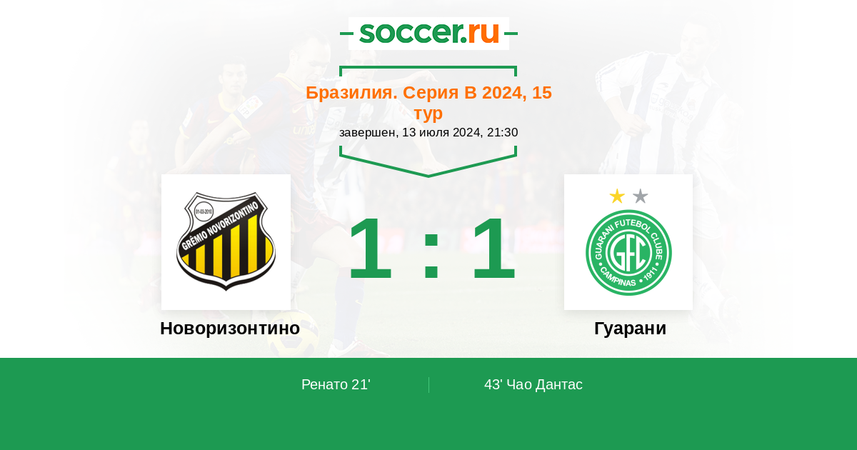 21' (1:0) Ренато (33) (Фабрицио Даниэль (77))