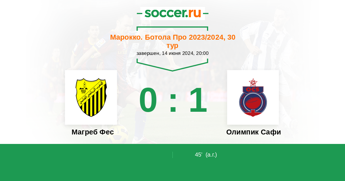 45' (0:1) Автогол H. El Ichaoui