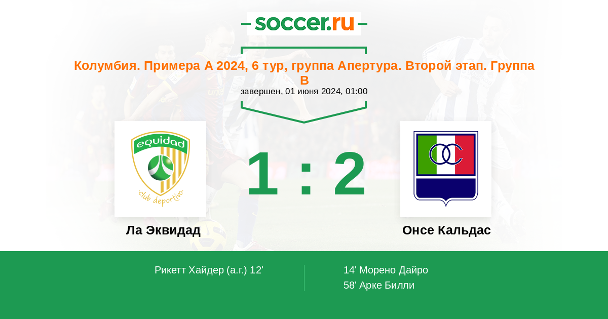 14' (1:1) Морено Дайро (17) (Гарсия Алехандро (20))