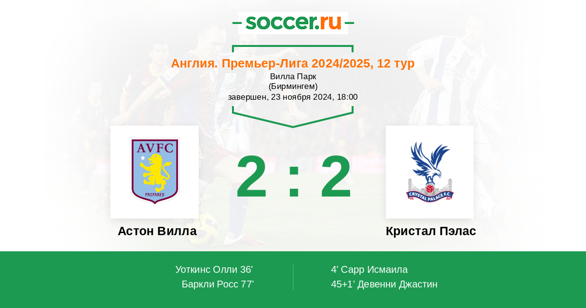 В матче английской Премьер-Лиги между командами Астон Вилла и Кристал Пэлас рискну предположить победу хозяев, потому как на их стороне поддержка местных болельщиков и плюс более результативная игра в атаке.