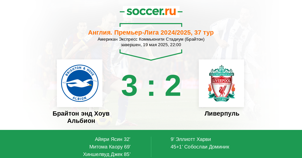 32' (1:1) Айяри Ясин (26) (Груда Брайан (8))