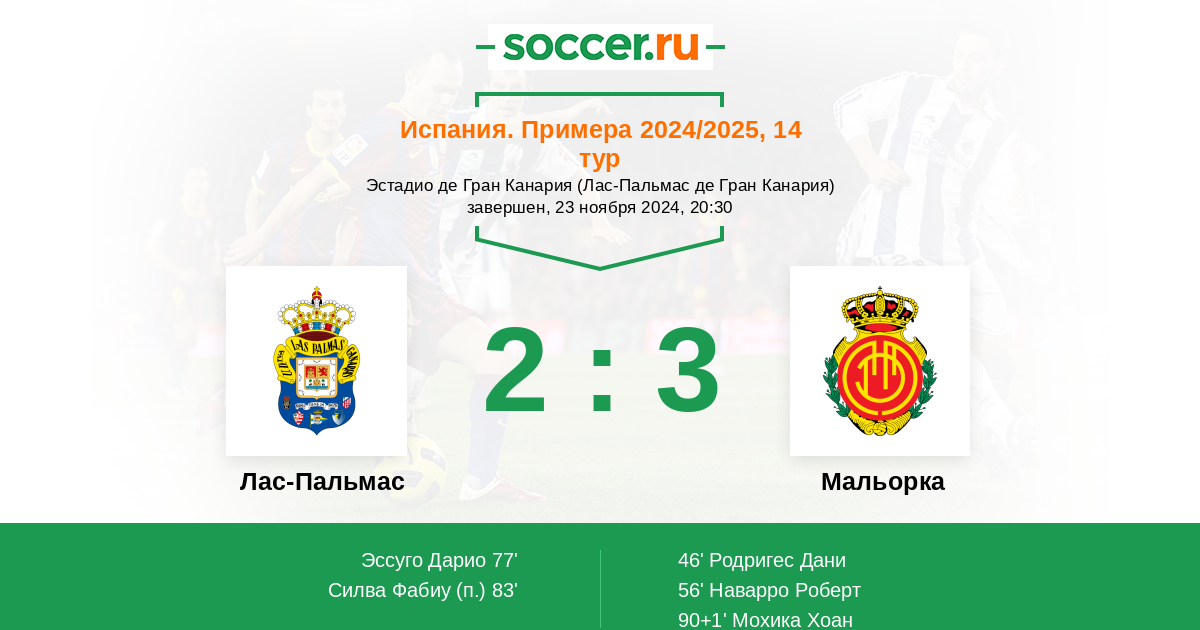 90+1' (2:3) Мохика Хоан (22) (Кошта Самуэль (12))