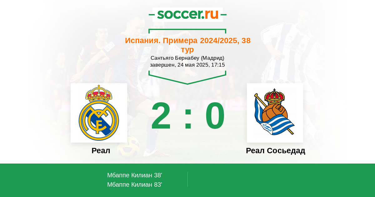 83' (2:0) Мбаппе Килиан (9) (Винисиус Жуниор (7))