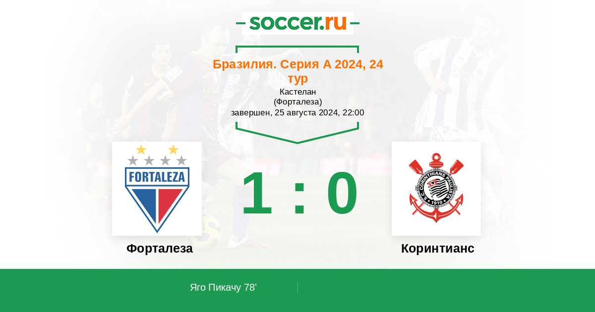 Запасные: 77 Коронадо Игор (с 9'), 14 Раньеле (с 46'), 11 Ромеро Анхель (с 46'), 9 Юри Альберто (с 46'), 17 Джоване (с 79'), 27 Брено, 32 Матеус Донелли, 26 Биро, 23 Фагнер, 46 Уго, 16 Энрике Педро, 13 Густаво Энрике