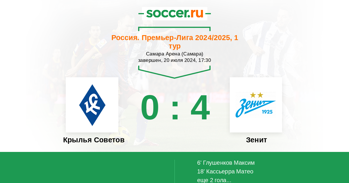 Чемпион уже неплохо усилился, однако некоторые лидеры продолжают покидать команду. Терять Самаре в таком матче вроде бы и нечего, а тут начало нового сезона и праздник для болельщиков. Крылья Советов должны начать резво и хотя вряд ли стоит надеяться хотя бы на ничейный результат, но огорчить дома соперника хотя бы один раз команда Осинькина вполне способна. Гости выиграли суперкубок страны, но все же не смогли сохранить ворота в неприкосновенности в игре против Краснодара. Да и товарищеские поединки в плане обороны не были идеальны. А вообще в четырех официальных играх Зенит ни разу не смог сохранить ворота в неприкосновенности.