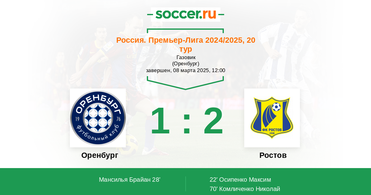 70' (1:2) Комличенко Николай (27)