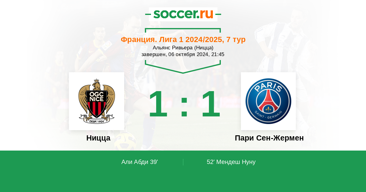 52' (1:1) Мендеш Нуну (25) (Дембеле Усман (10))