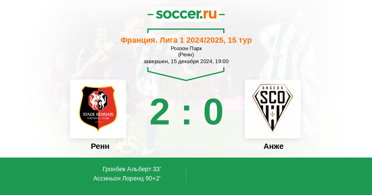 33' (1:0) Гронбек Альберт (7) (Блас Людовик (11))