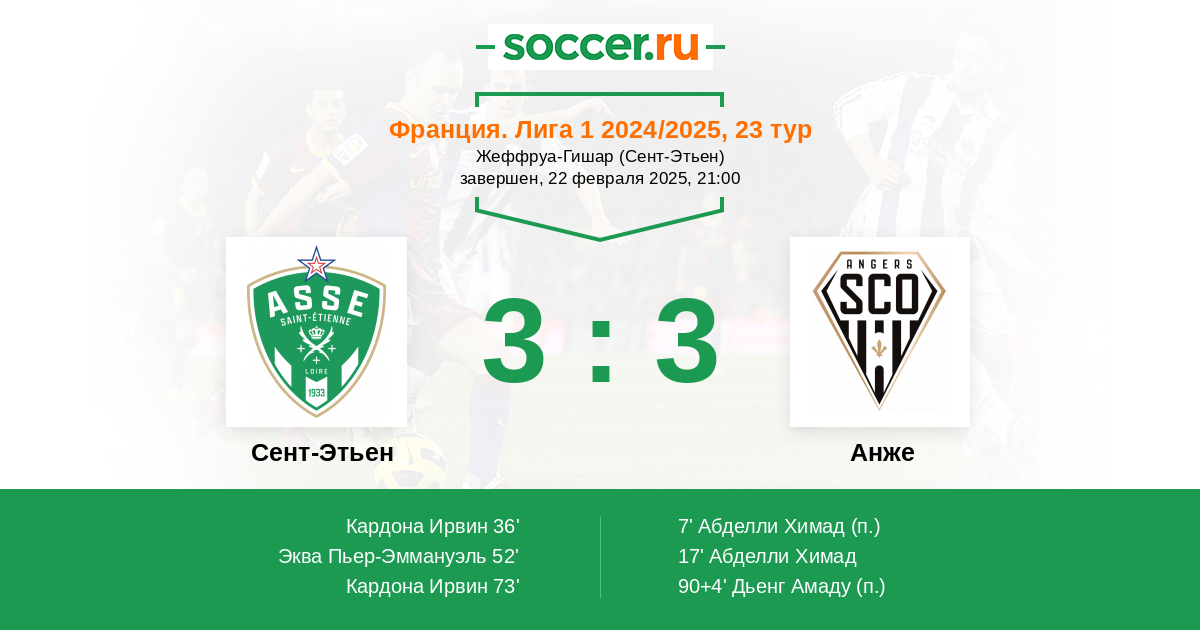 52' (2:2) Эква Пьер-Эммануэль (4) (Давиташвили Зурико (22))